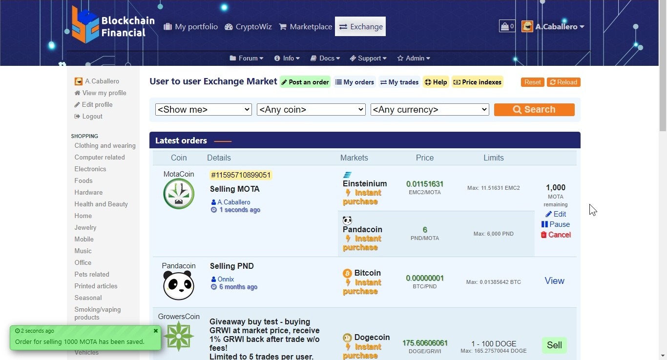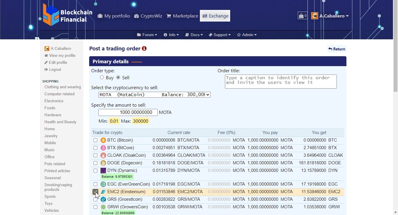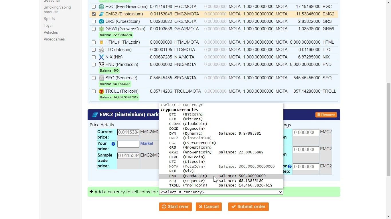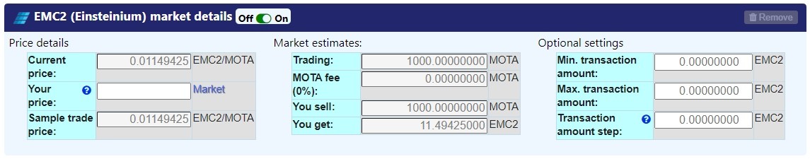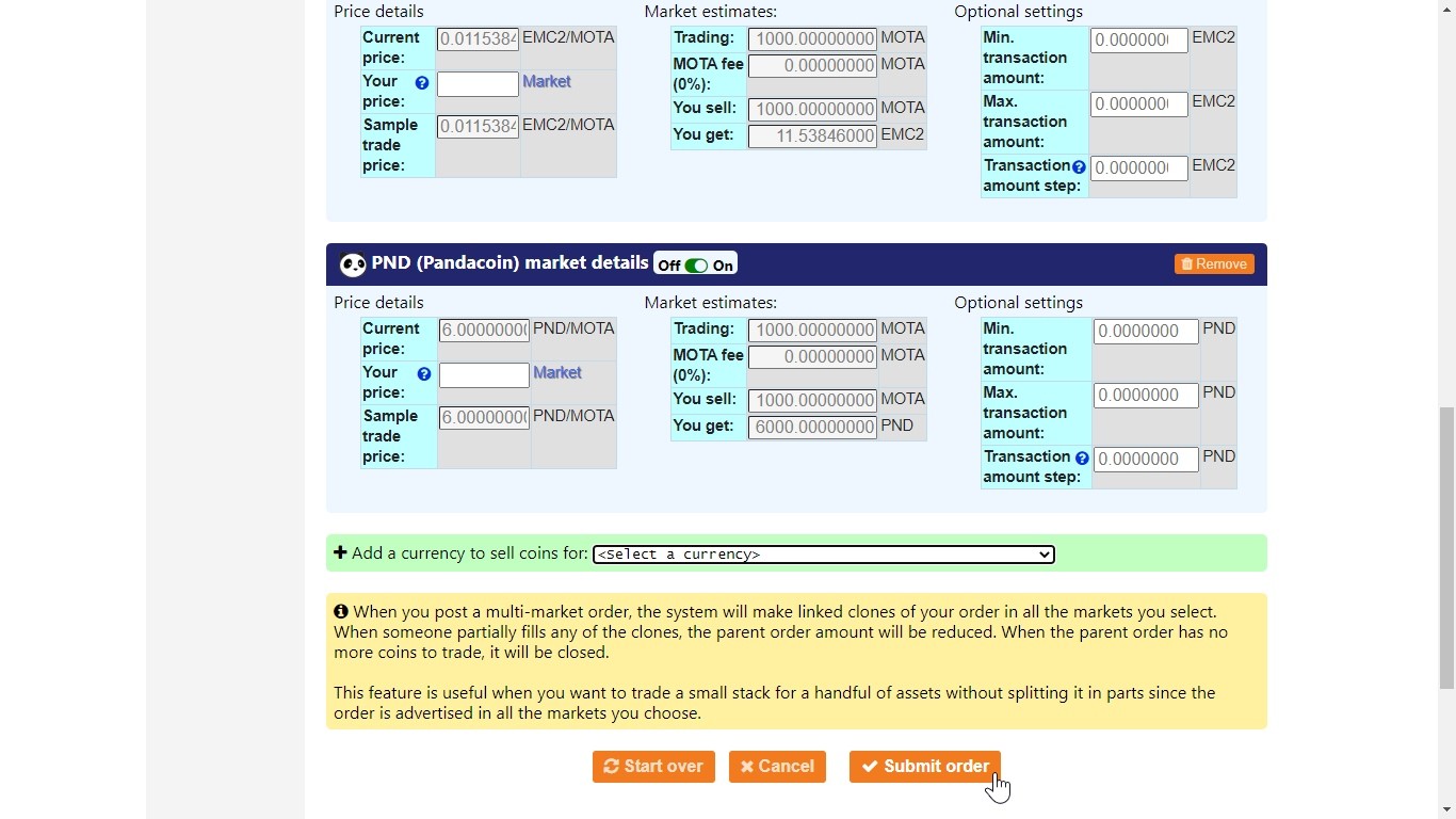 That, supposing there are MOTA/EMC2 and MOTA/PND markets, but most of the time you'll have to first convert your MOTA to BTC, LTC or other major market.