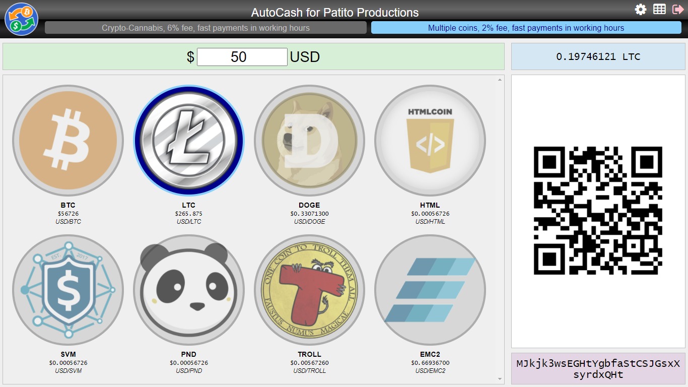 You'll get a dashboard in the merchant's AutoCash space, where you enter the fiat value of the goods being purchased by your customer and the amount of cryptos they have to pay.