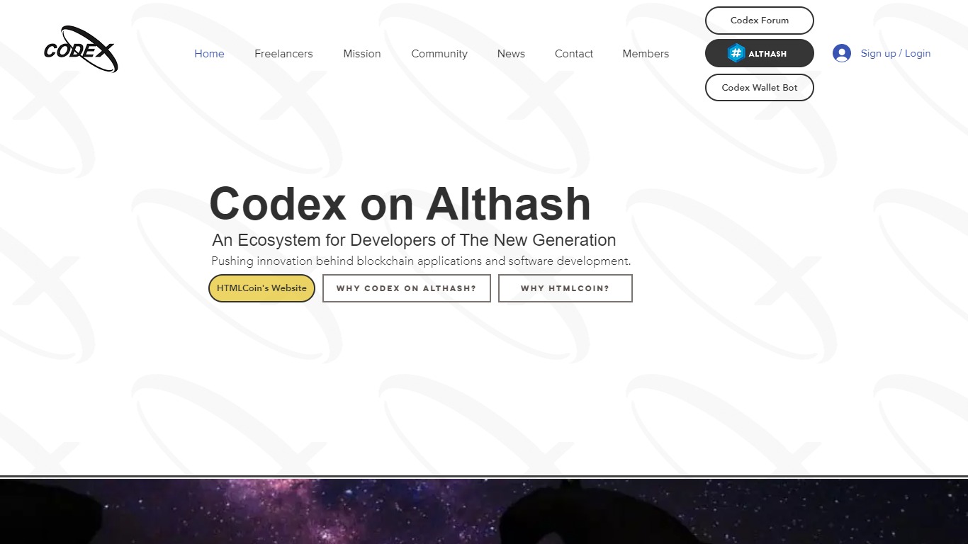 The Codex mission is to continuously build an ecosystem of programmers and developers on Althash with focus on building value through utility. By on-boarding many skilled freelancers, we are able to introduce them to the HTMLCoin software as well as promote applicatory advancements for Codex on Althash.