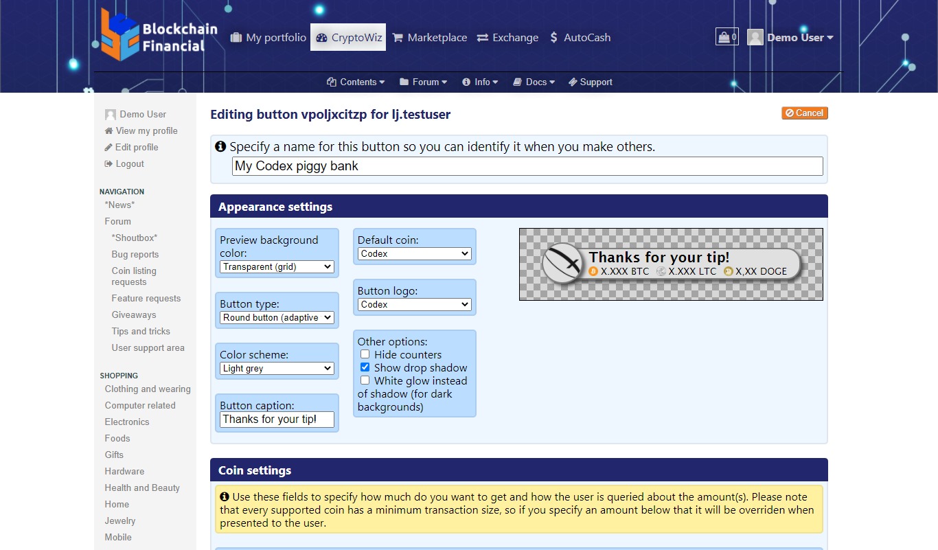 - Create advanced CryptoWiz buttons to use BCF as a payment gateway