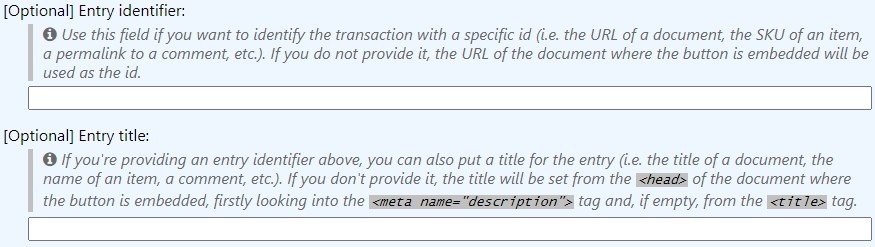By default, the <title> and <meta “content”> tags from the page where the buttons are embedded are used to identify where the coins are being categorized into, so you will have different counters for coins on the same button across all your page.