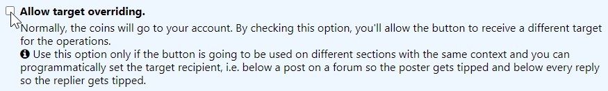 Let’s say you have a multi-author blog and you want your engine to automatically put a “Tip the author” button below the post’s content. Under normal circumstances, you may think on creating a button for each author and give them the invocation code for their respecting buttons or maybe creating a button and giving them referral codes. But in either case, all the coins gathered are going to your account and not theirs.
