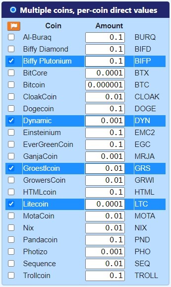 This one is similar to the previous, but the user can select more than one coin to and also specify the amount to send: