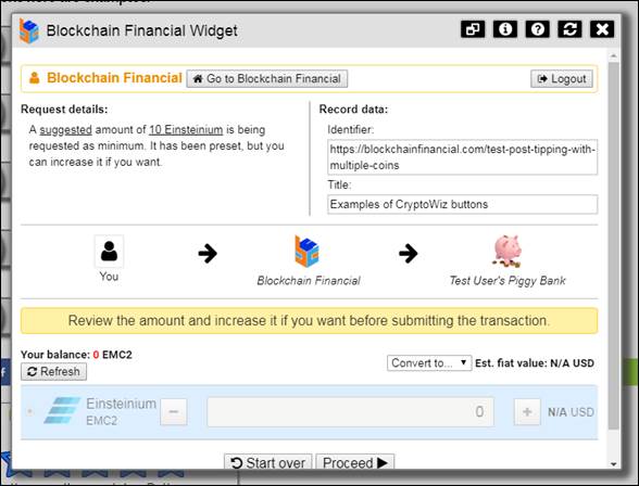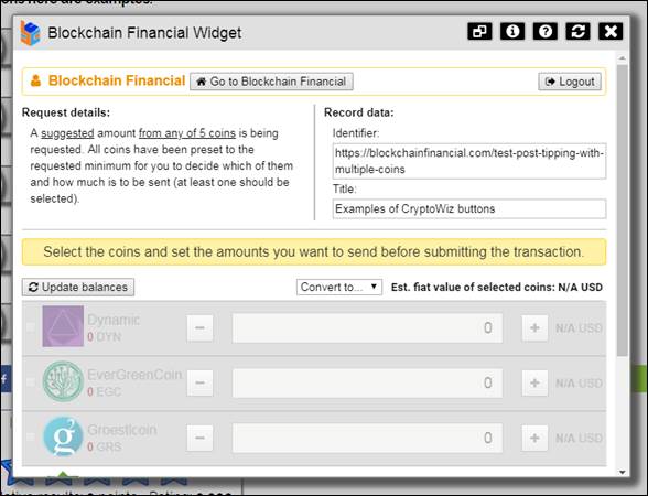Suggestion: select this type when you want to suggest an amount for every coin you want to support in your request. When the widget is invoked after clicking your button, the minimums will be preset and the users will be allowed to specify any amount above that.