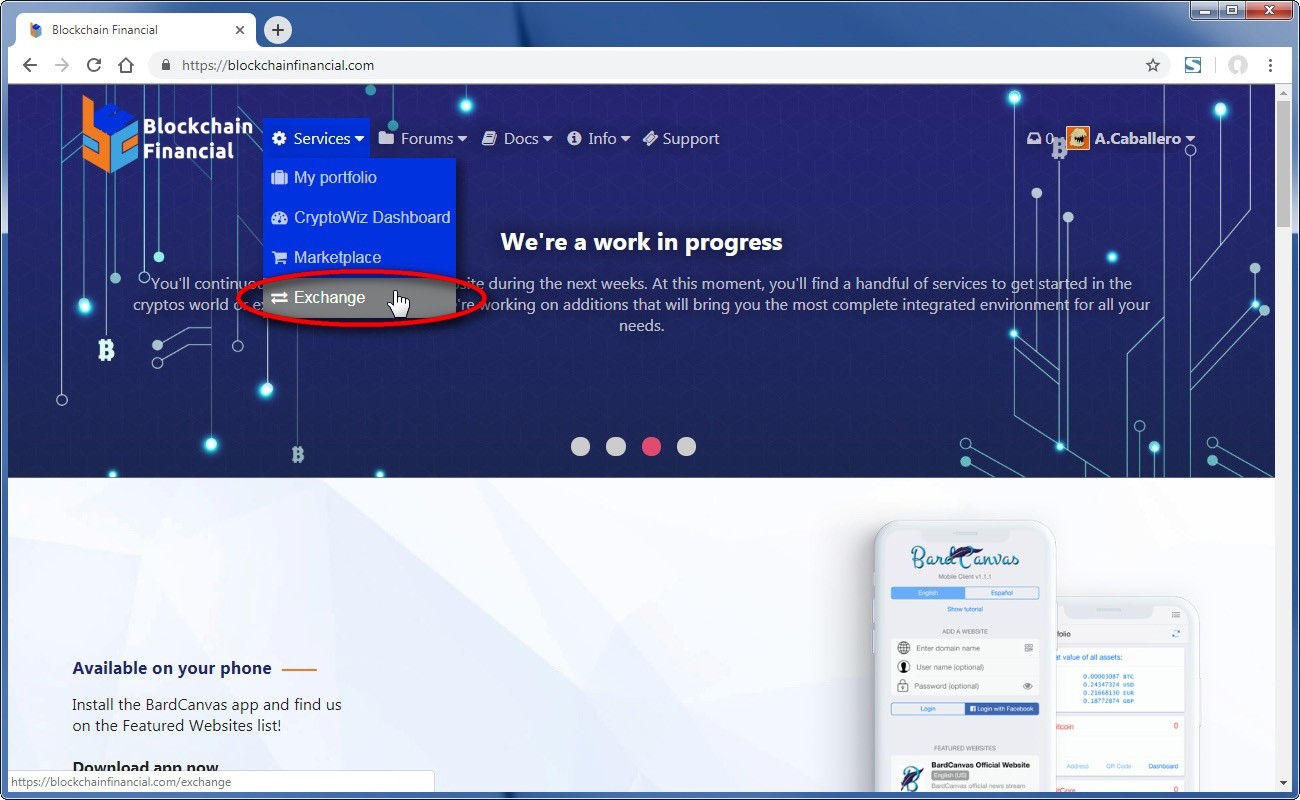 To enter the exchange, you just pull down the "Services" menu and hit on "Exchange":