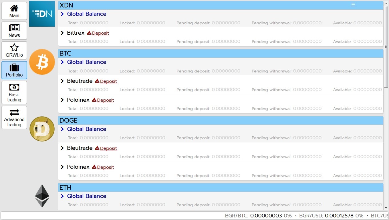 By providing your API keys, you can manage your balances from your accounts at Blockchain Financial and multiple exchanges simultaneously. This includes Cryptopia, Bittrex, Bleutrade and Poloniex.