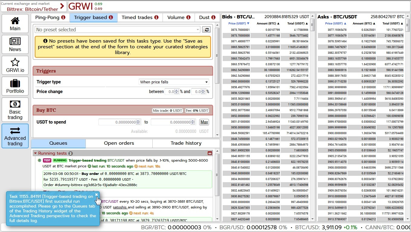 And if you're a super pro, you can make the bot launch your tasks in "testing" mode so you can fine tune and squeeze the most out of your coins.