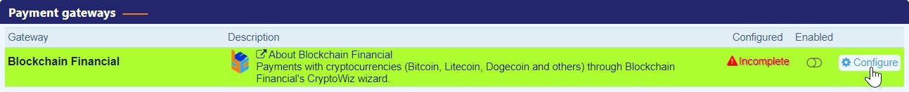 Setting up the configuration for our payment gateway is simple. When you click on the "Configure" button, you're presented with the next form: