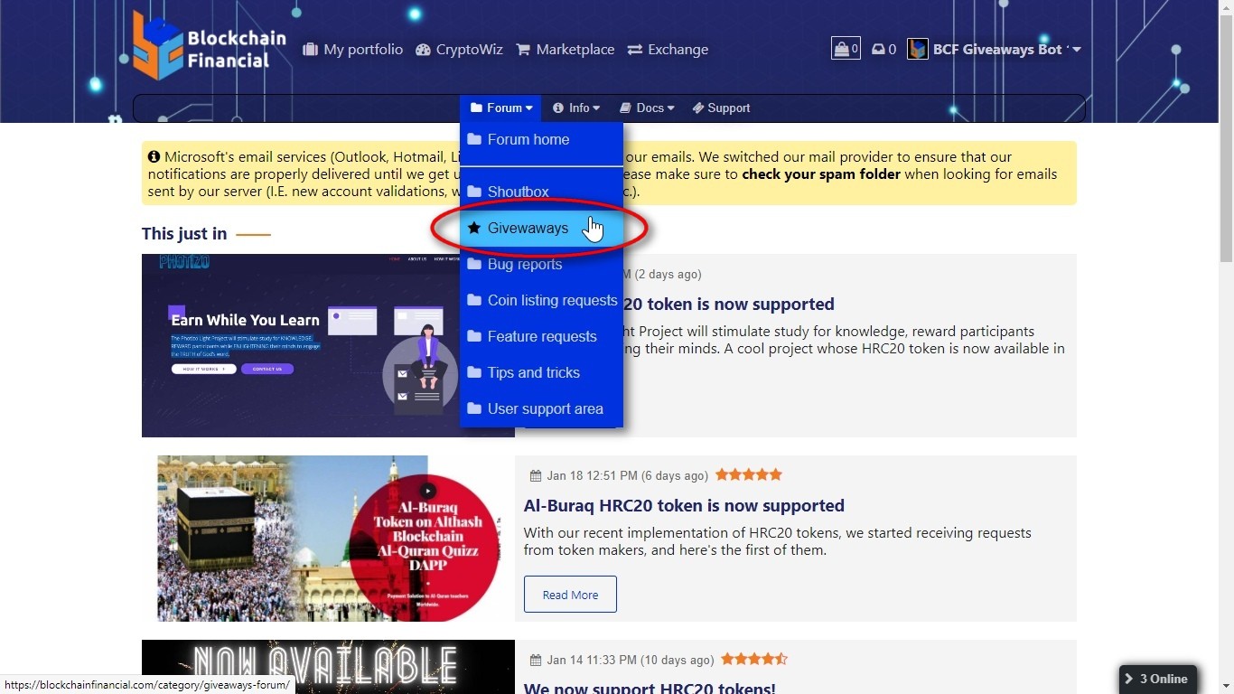 1. Login into your account and hit "Forum" on our menu, then "Giveaways":