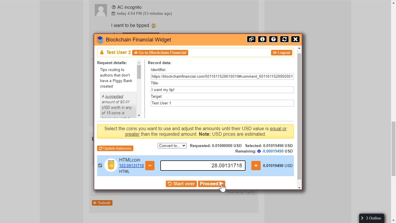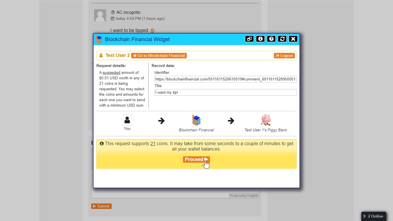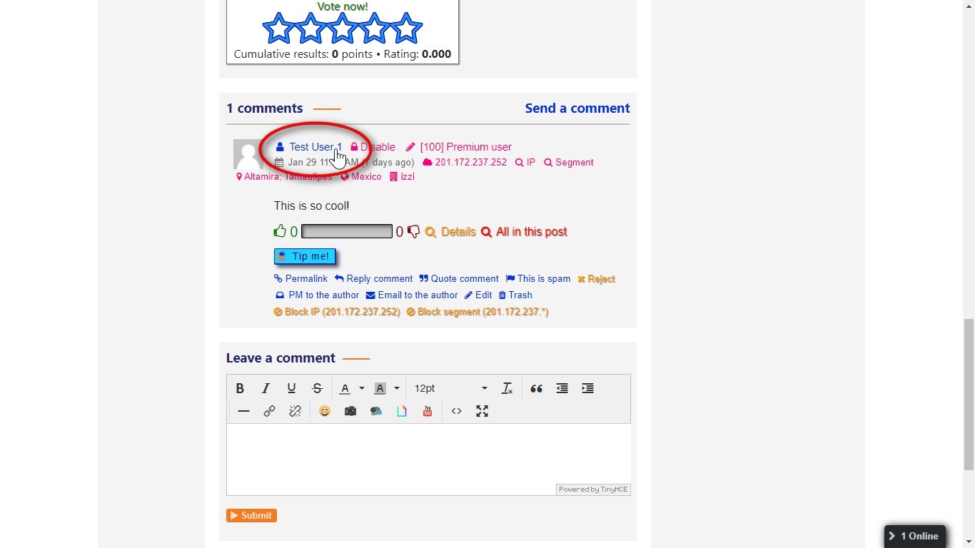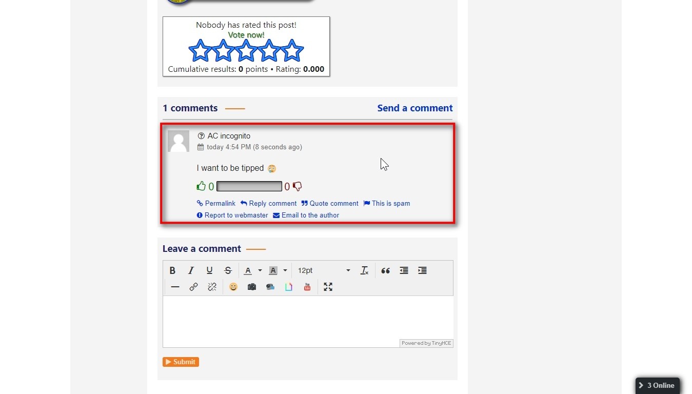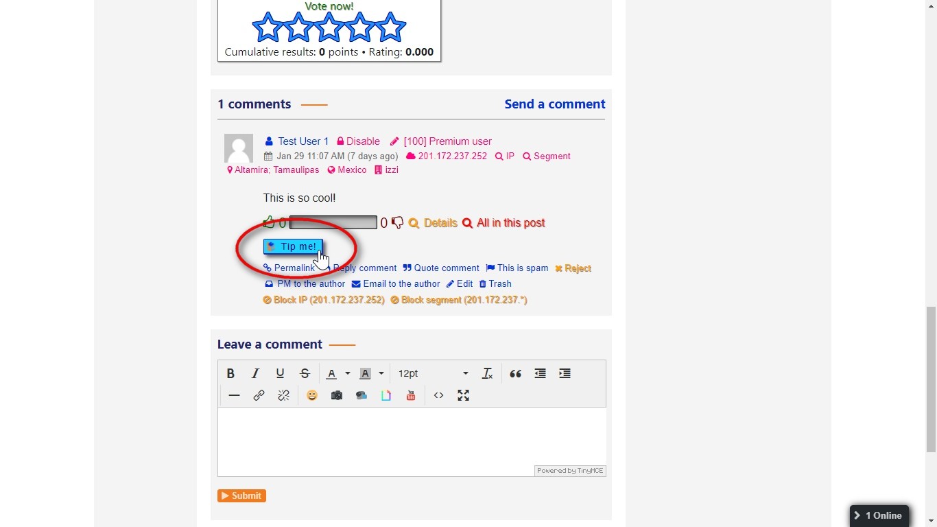 Now, when an online user comments, you can tip them. Here's when you click on the tipping link: