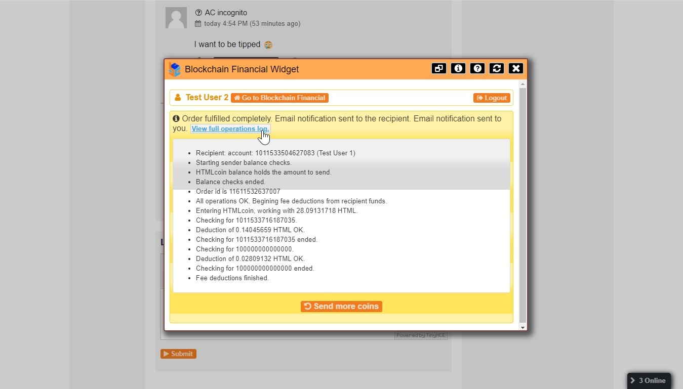 When you tip someone, both will receive notifications and the transaction will be shown in both logs.
