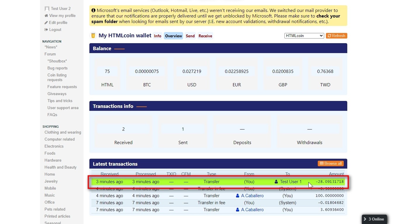 When you go to your coin dashboard, you can see the latest transactions on the overview tab: