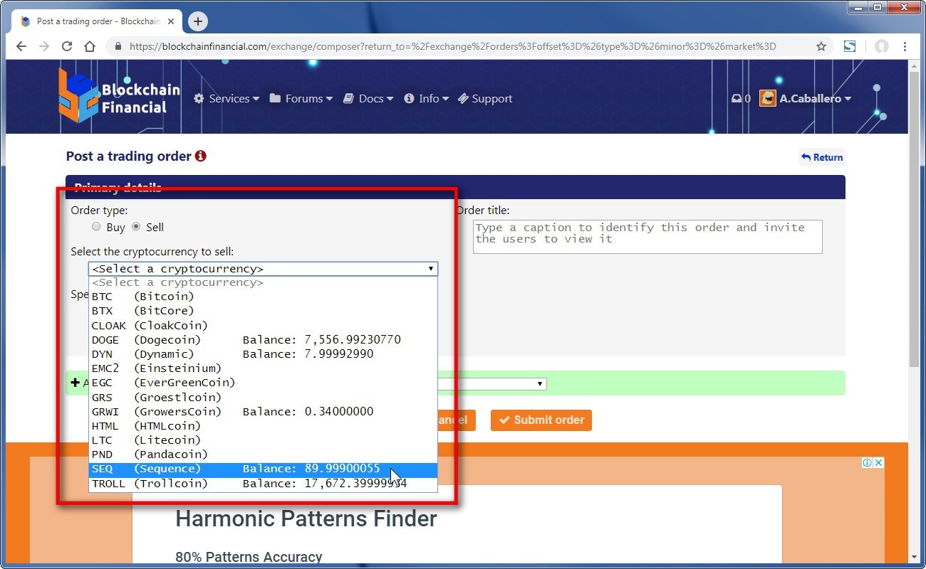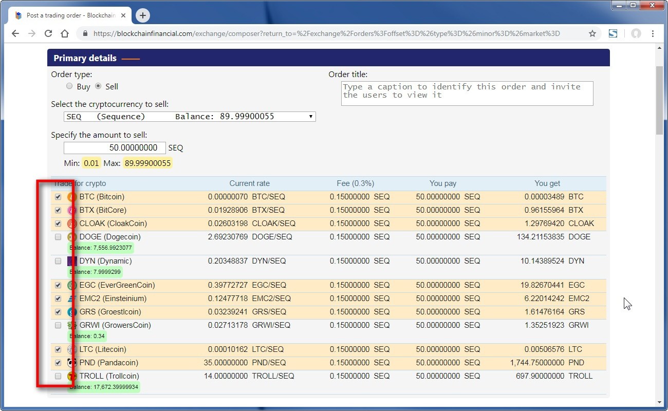 Once there, change the order type to "Sell" and pick up the coin you want to trade away: