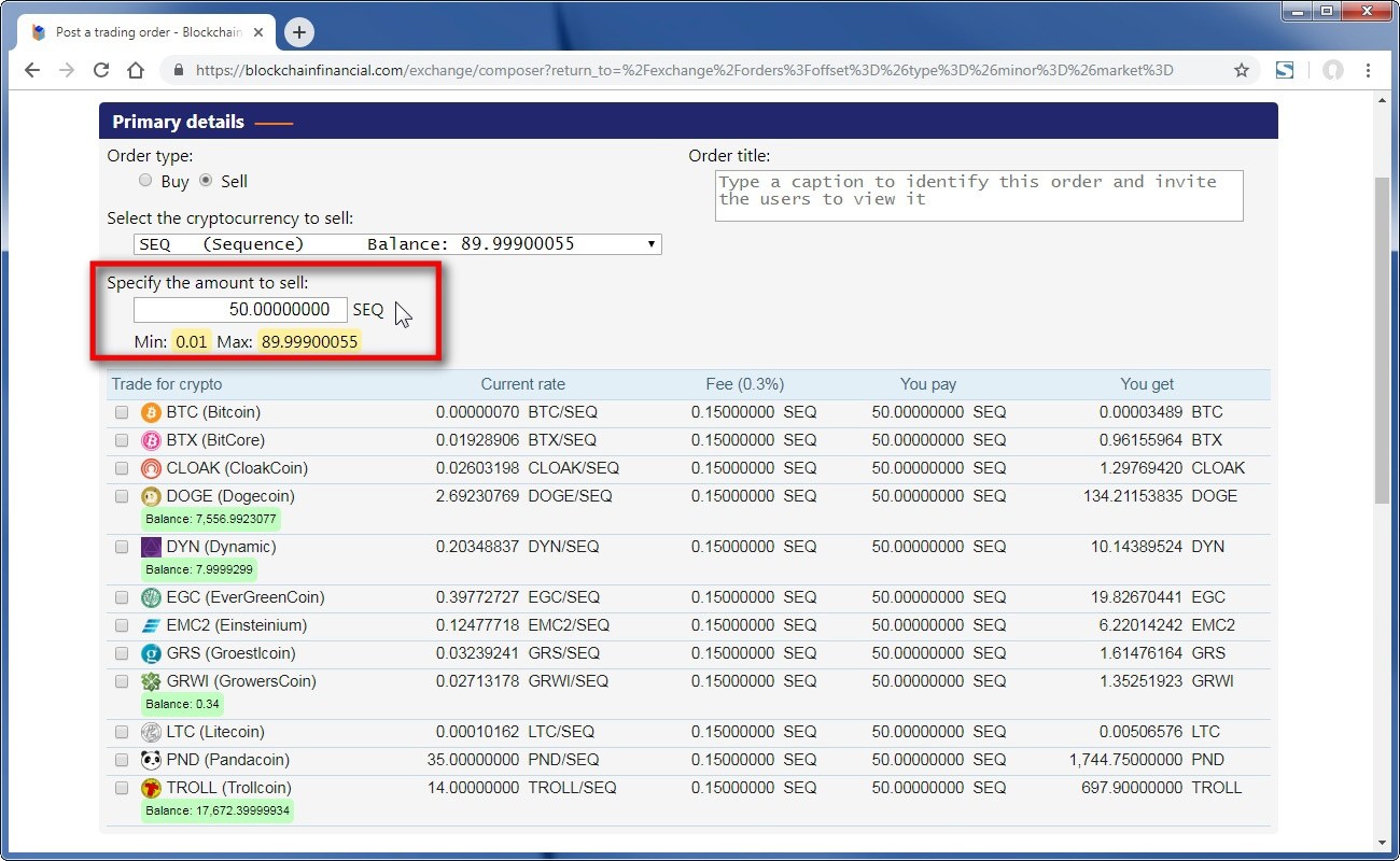 Specify the amount you want to sell.