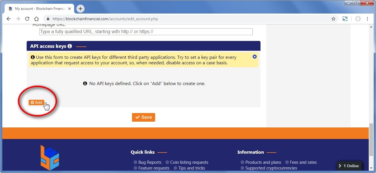 2. Once you're on your profile editor, scroll down to the "API access keys" section and click on the "Add" button:
