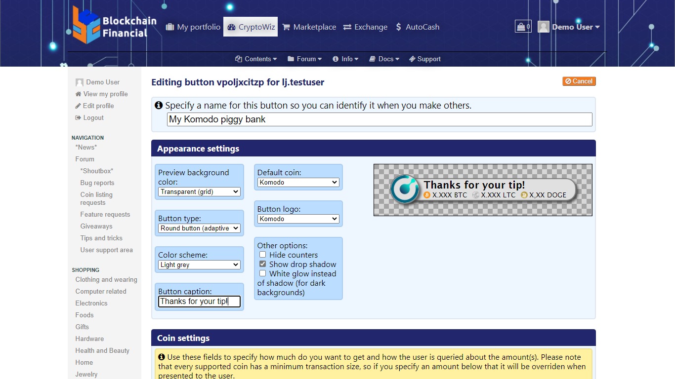 - Create advanced CryptoWiz buttons to use BCF as a payment gateway