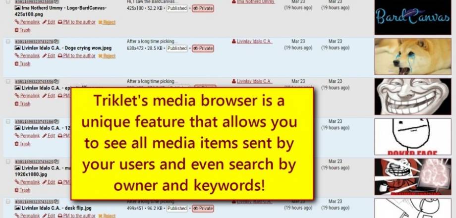 Triklet is built on top of the BARDCANVAS engine, an Open Source multi-purpose engine and Content Management System made in PHP, authored and heavily maintained by LAVA SOFTWORKS dev staff. This gives Triklet an advantage over its competitors, because it allows you to extend your system even more with both free and commercial modules released on the BARDCANVAS WEBSITE.