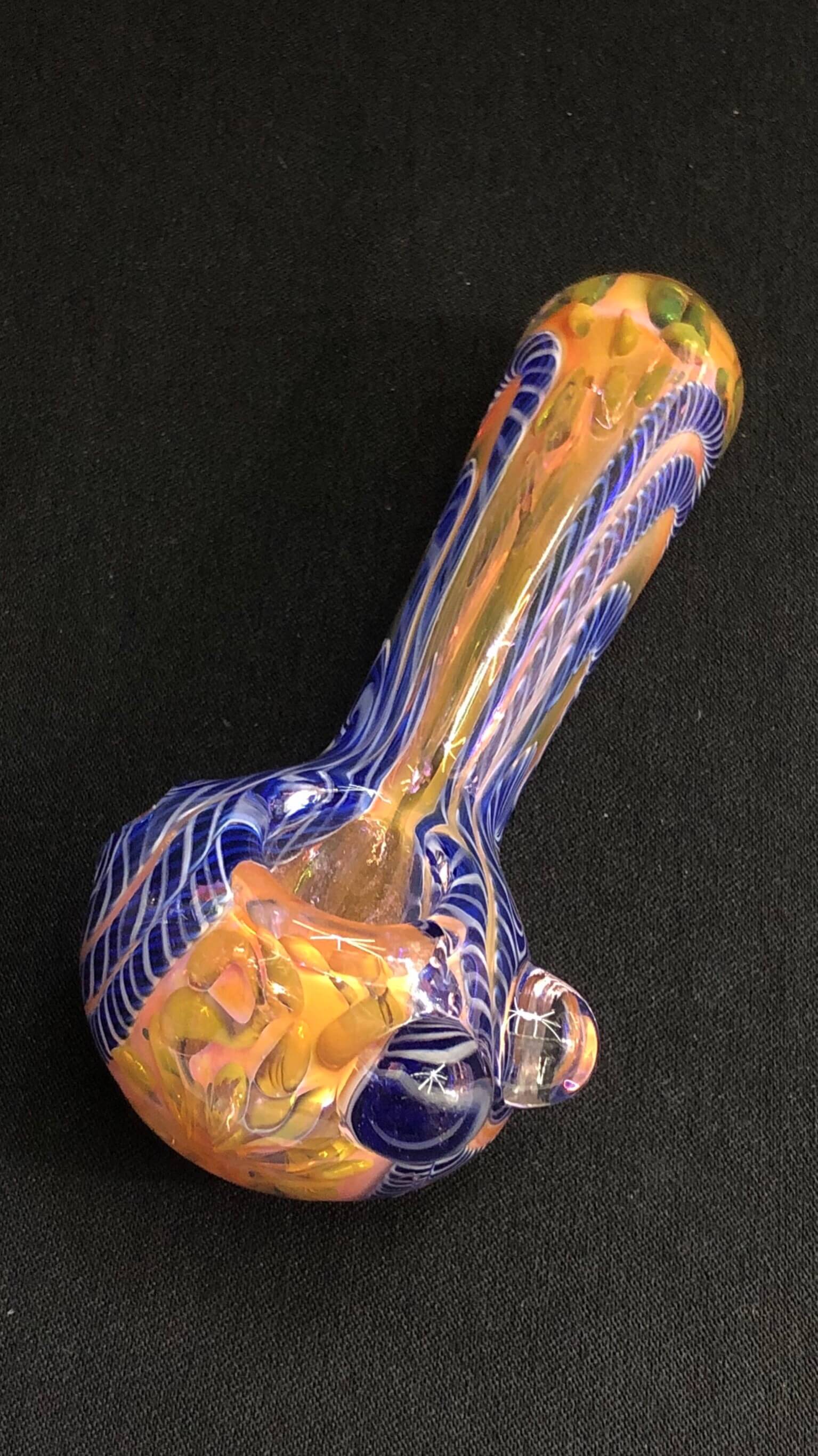 玻璃煙斗 Glass Hand Pipe 迷幻橘藍 Orange Blue Swirl 10公分cm is a trippy and beautiful piece.