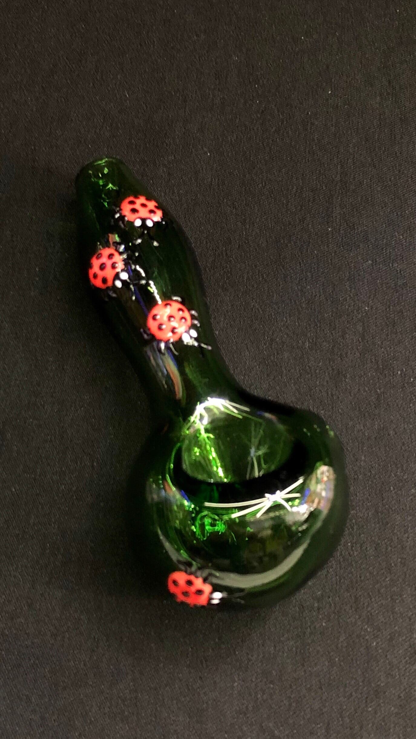 綠色瓢蟲玻璃煙斗 Green Ladybug Glass Hand Pipe 10.5公分cm for pretty girl!