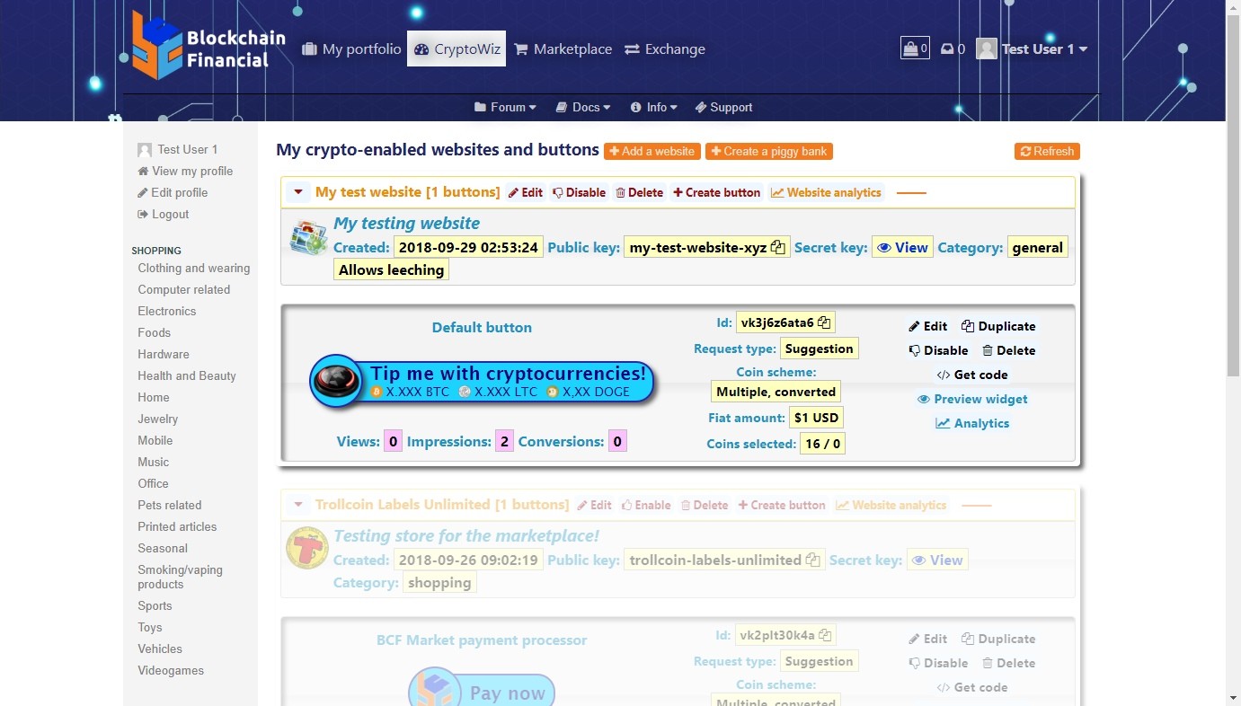 • Create advanced CryptoWiz buttons to use BCF as a payment gateway