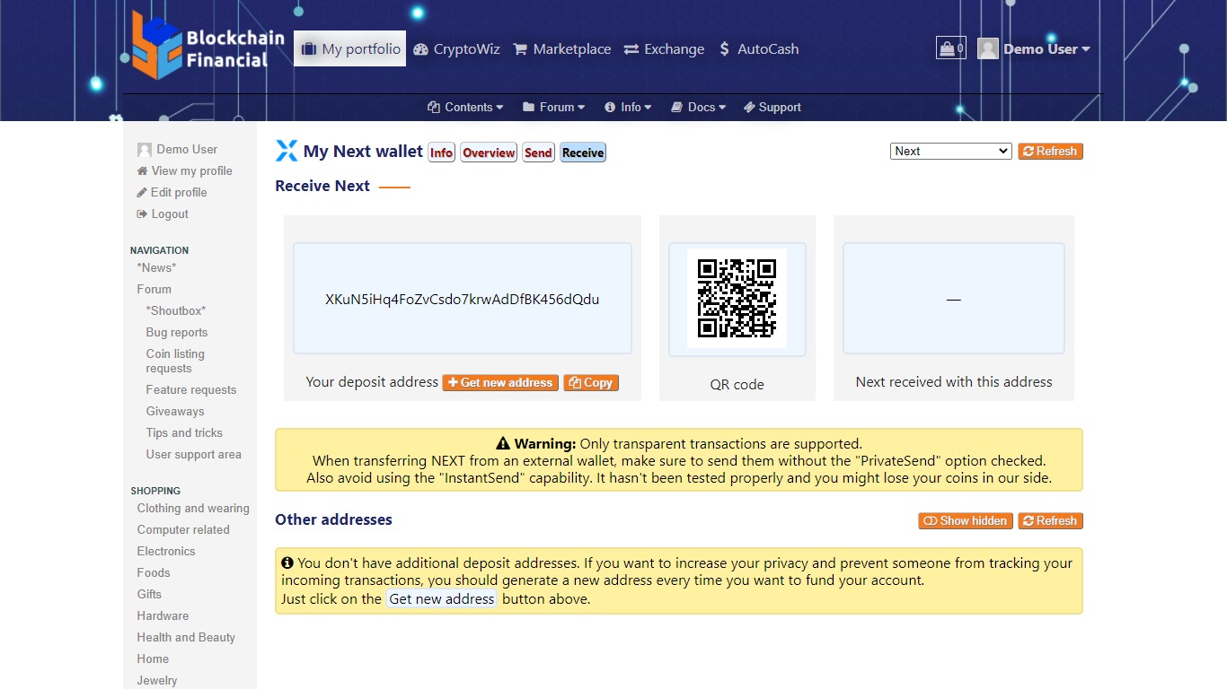 - Create a store in our marketplace and sell goods or services for Next Coin and other cryptocurrencies
