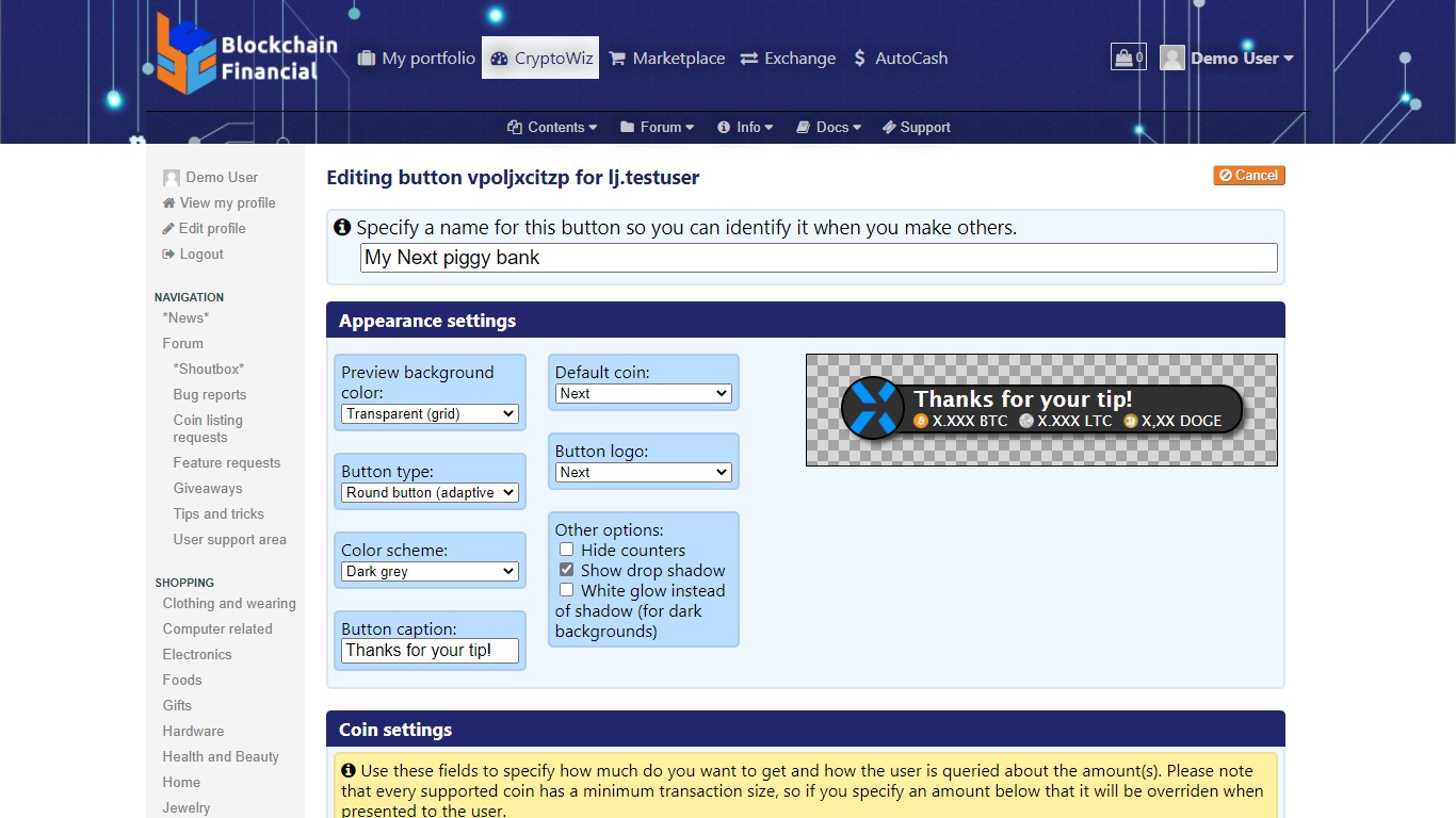 - Create advanced CryptoWiz buttons to use BCF as a payment gateway