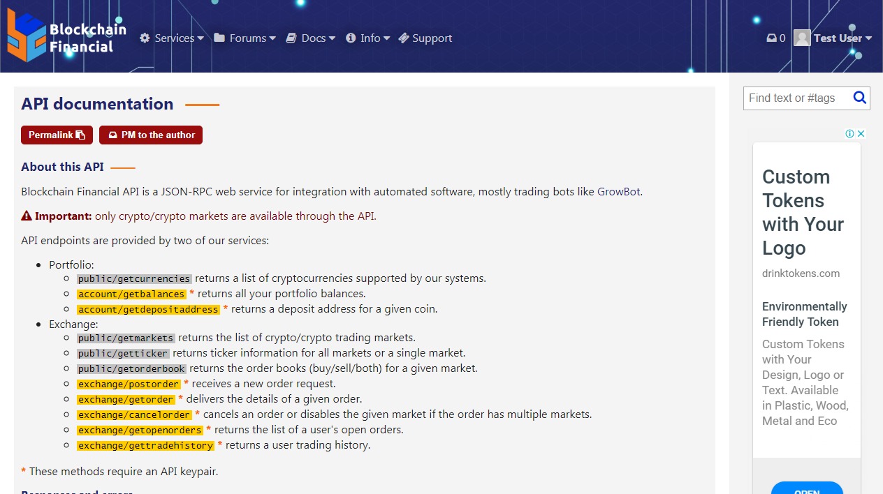 Going back to the API, we added several endpoints that allow developers to make interfaces to our services for developing automated trading solutions.