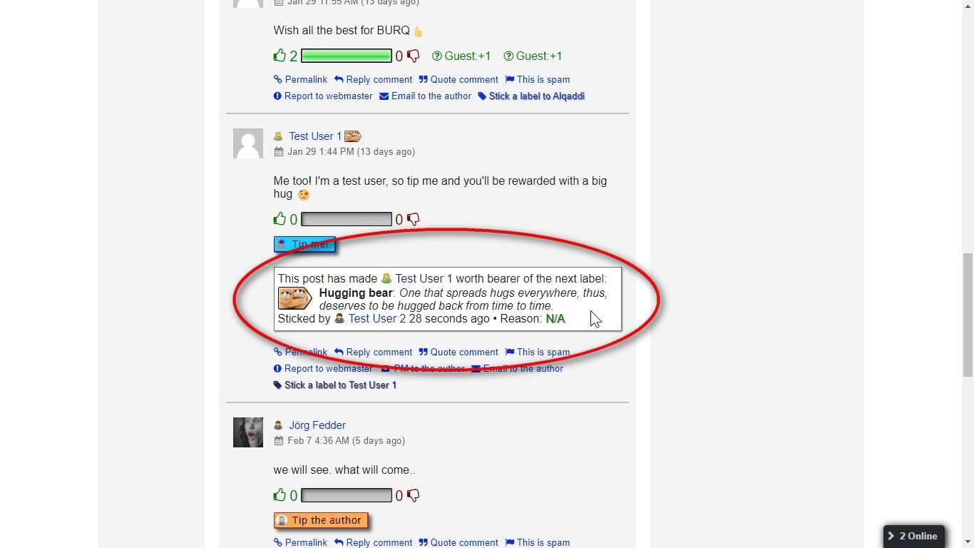 This feature allows everyone to stick labels to users based on their personality or behavior... let's say you go into a forum post and you like or dislike a user on the comments section... well, you can stick a label to the user and that label will appear everywhere on our website: