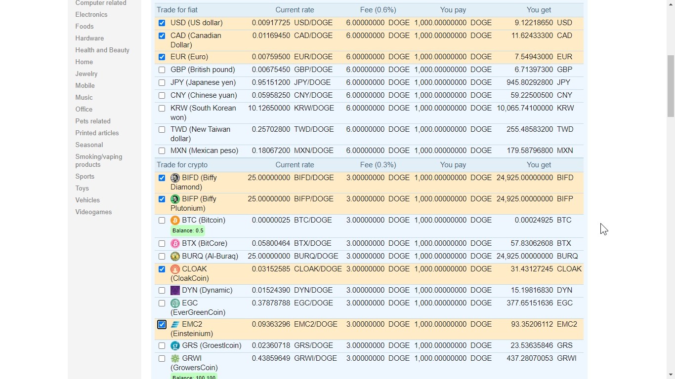 Let's say you want to sell 1000 DOGE for other altcoins AND some fiat currencies. You basically do the same as you usually do: specify the amount and check all the markets where you want to trade: