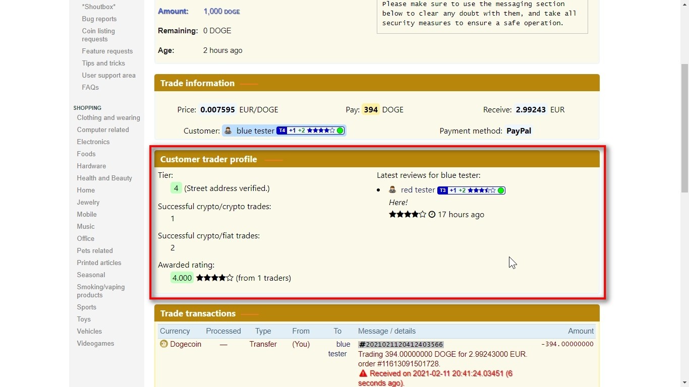 When someone takes one of your orders, you can see their trader profile in-trade: